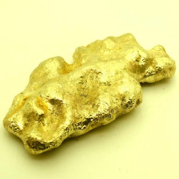 Für einen Goldnugget gelten sein Gewicht und seine Farbe als die besten Indikatoren für seine Qualität. Halten Sie nach hellem und glänzenden Gold Ausschau; sollte ein Nuggets zu dunkel sein, kann es sein, dass er zuviel Kupfer oder andere wertlosere Metalle und Mineralien enthält. Reines Gold sieht im Grunde genommen genauso aus, wie man es erwarten würde.